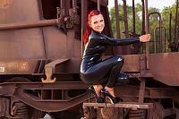 Unter meinem Sommerkleidchen trug ich an dem Tag meinen schwarzen Latexanzug was vielleicht auch der Grund dafür war, dass es mir so verdammt warm war. Zumindest zog ich mein Sommerkleidchen aus und genoss es, wie der Wind mich etwas abkühlte. Und schon war auch das erste Foto gemacht. Eine total witzige Situation in der ich mich ausgesprochen wohl gefühlt hatte.